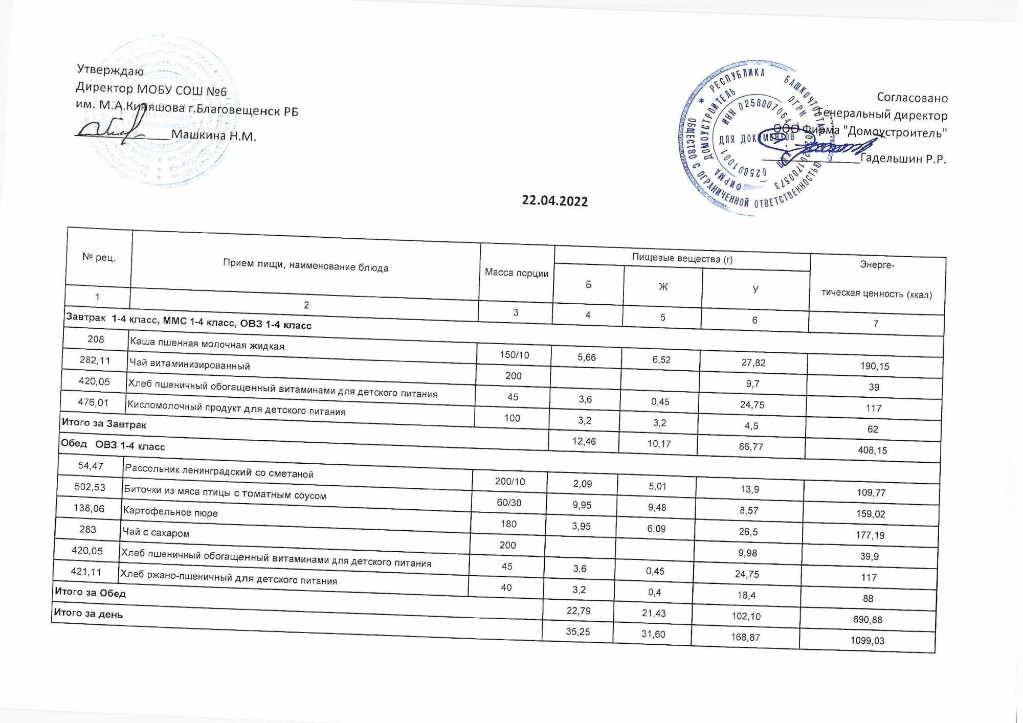 Стоимость школьного питания