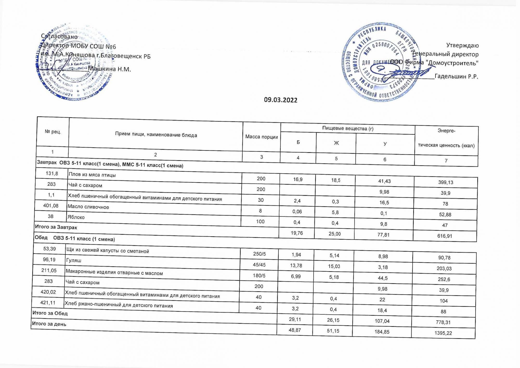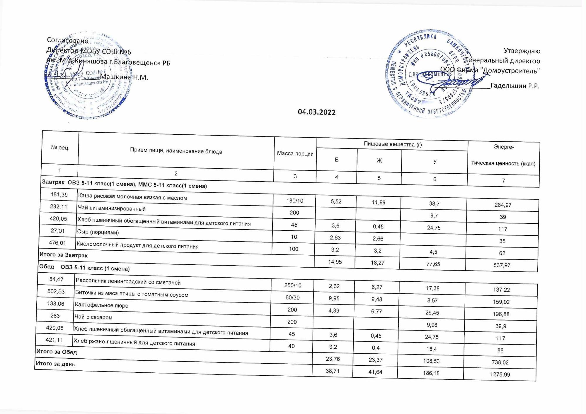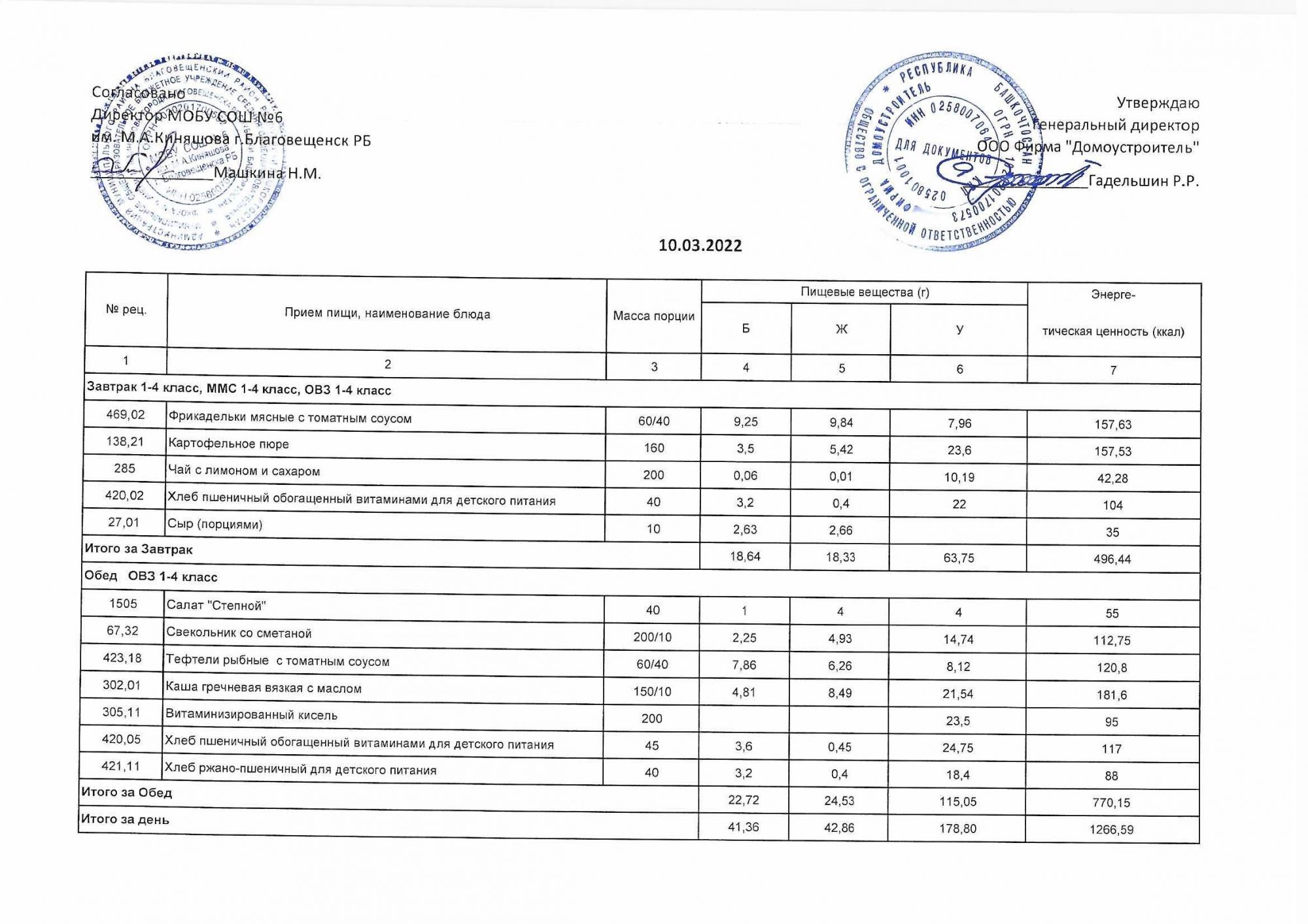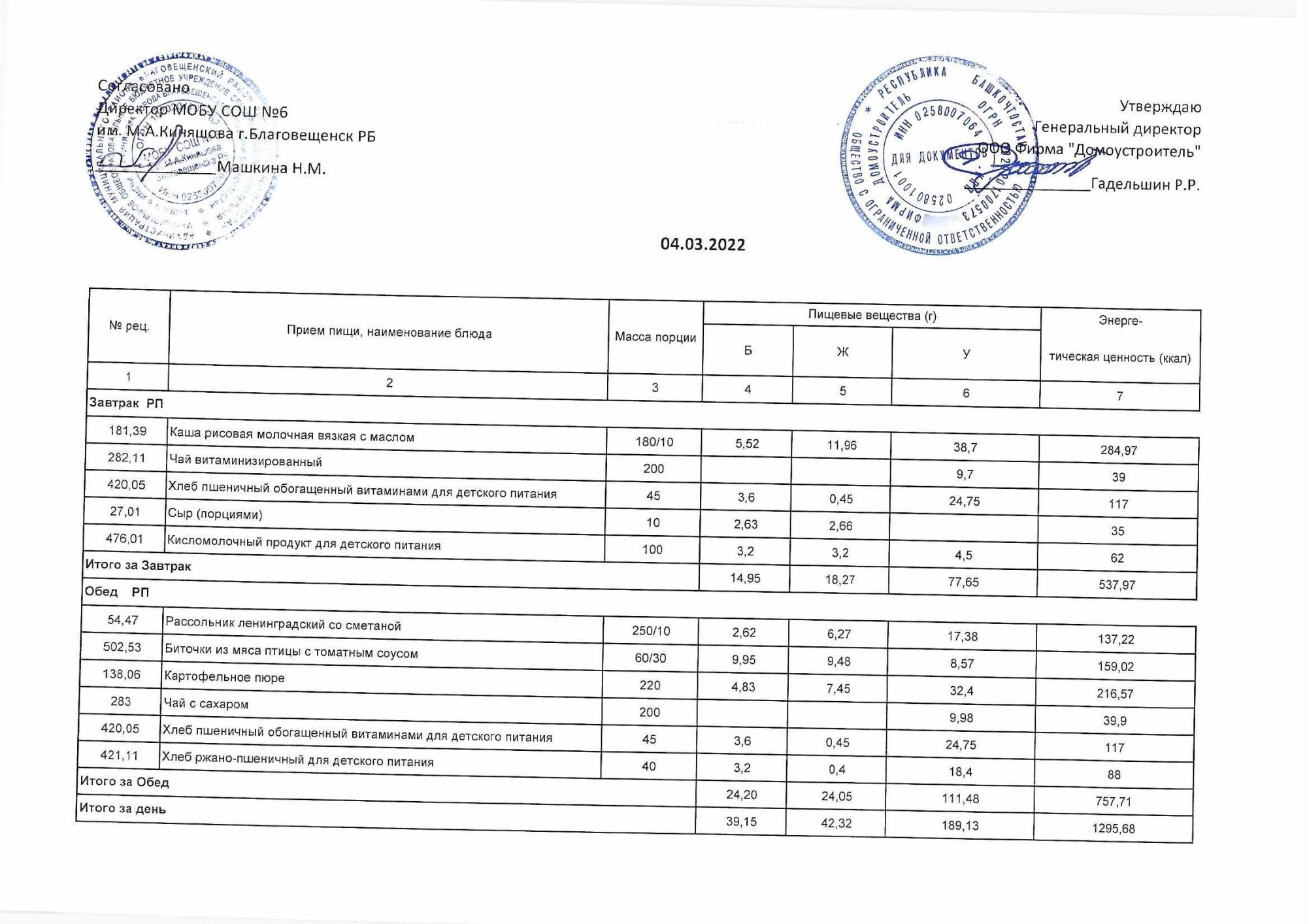 (Акт о замене блюд)