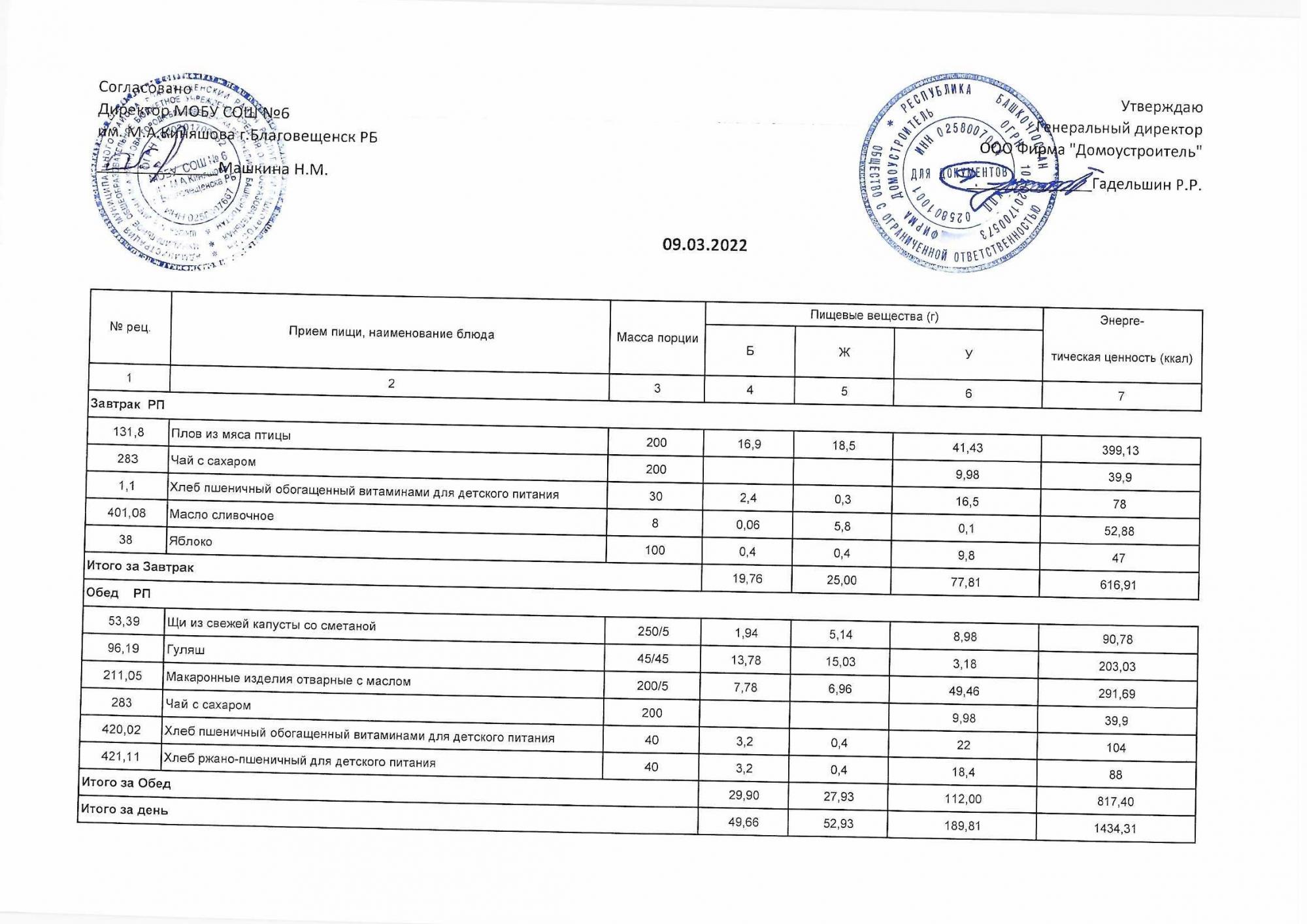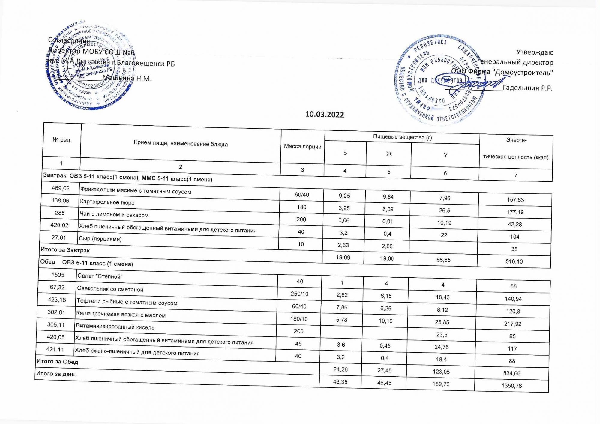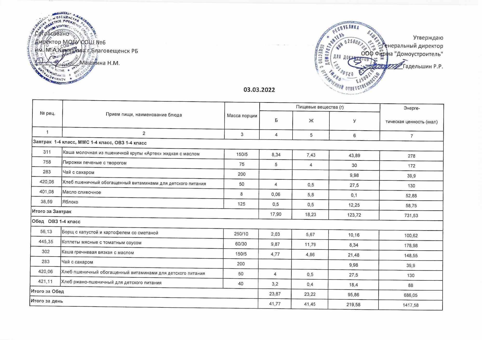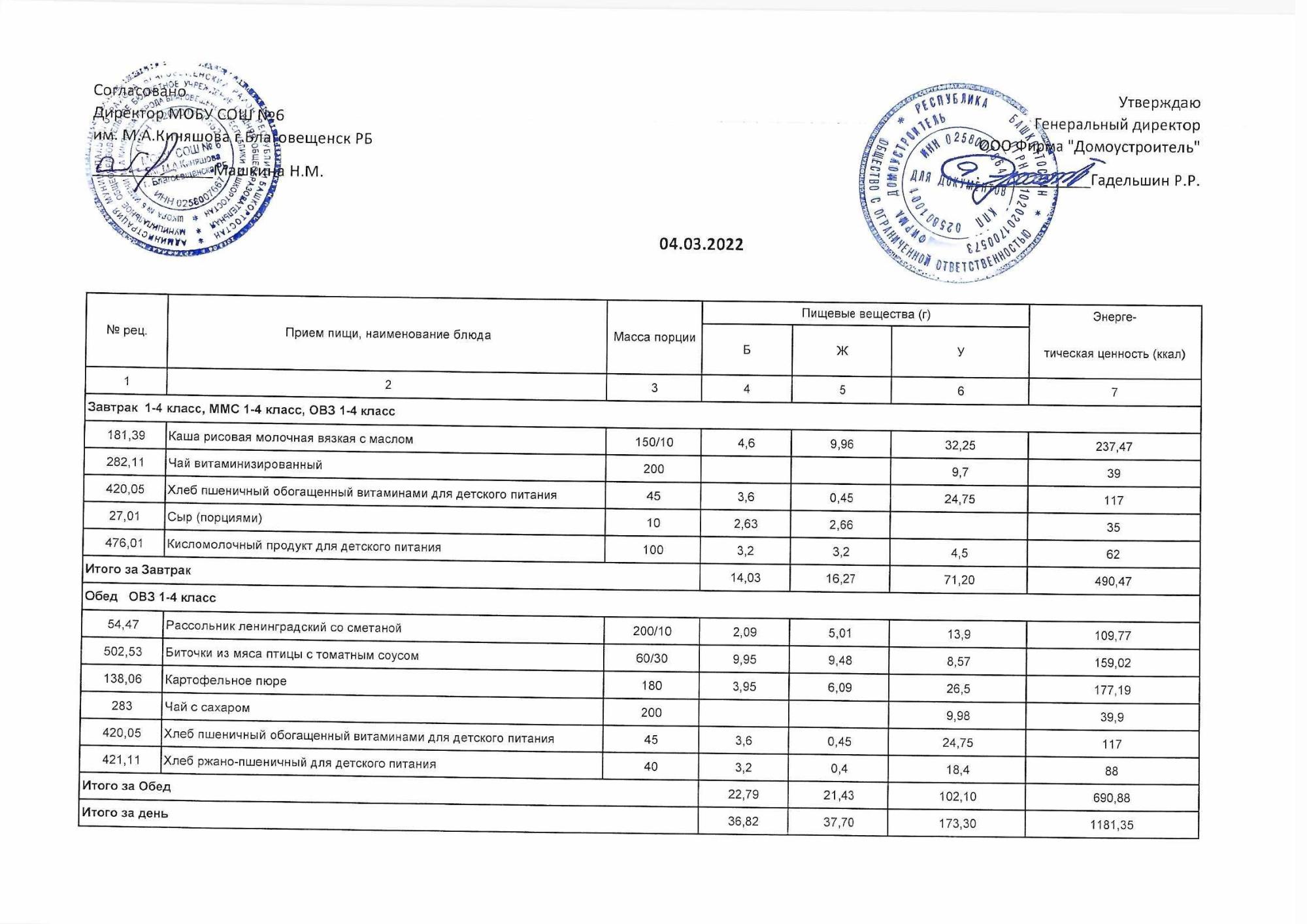 (Акт о замене блюд)