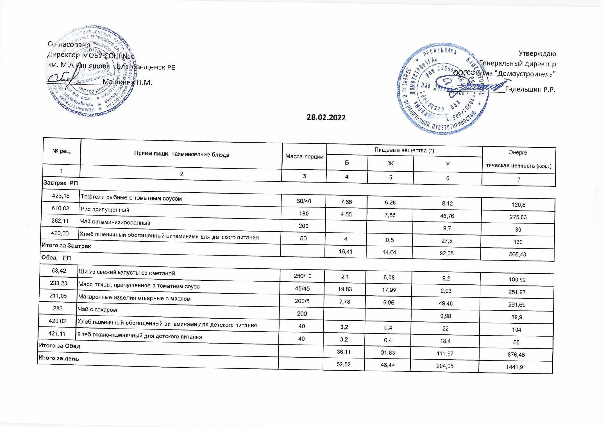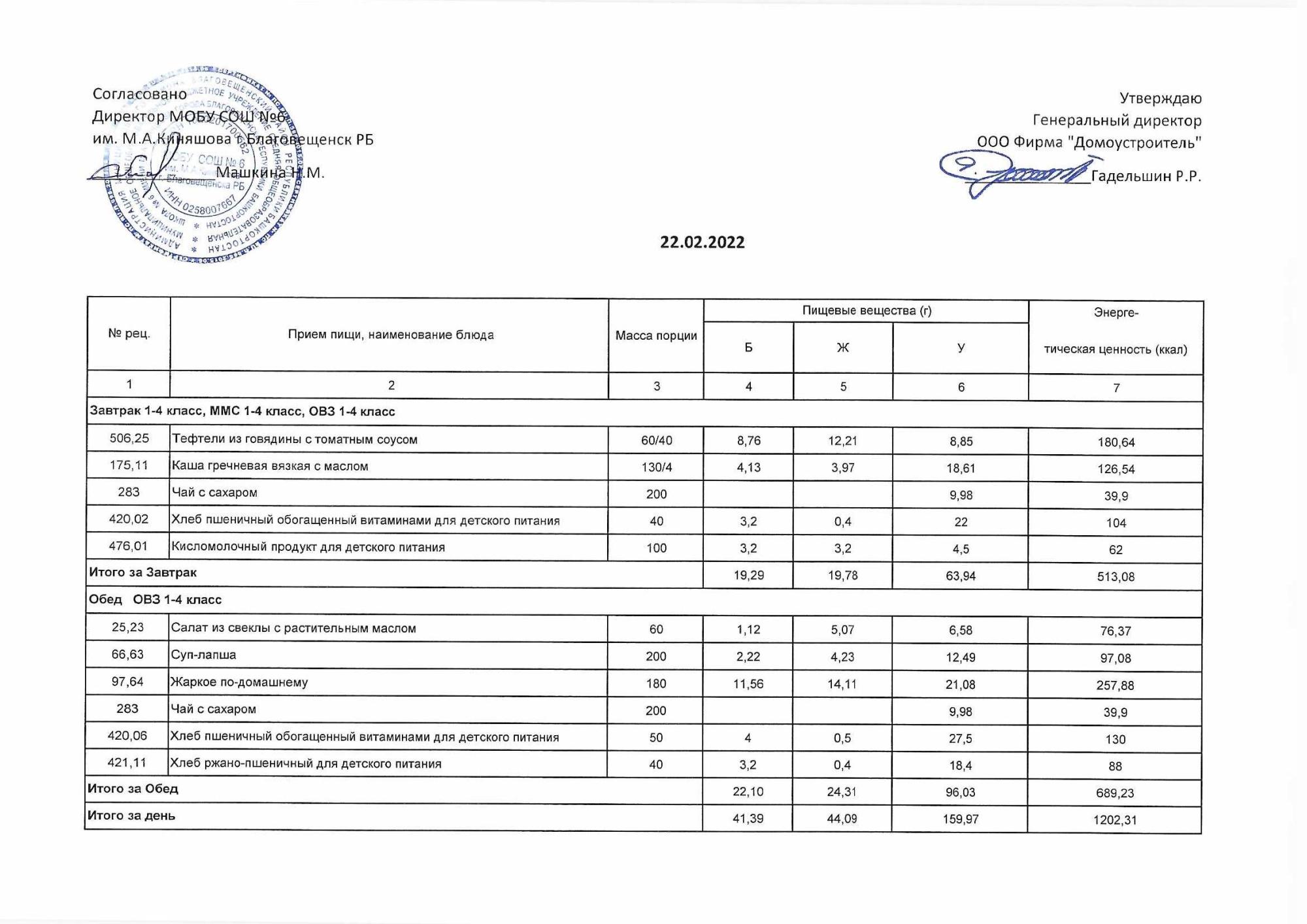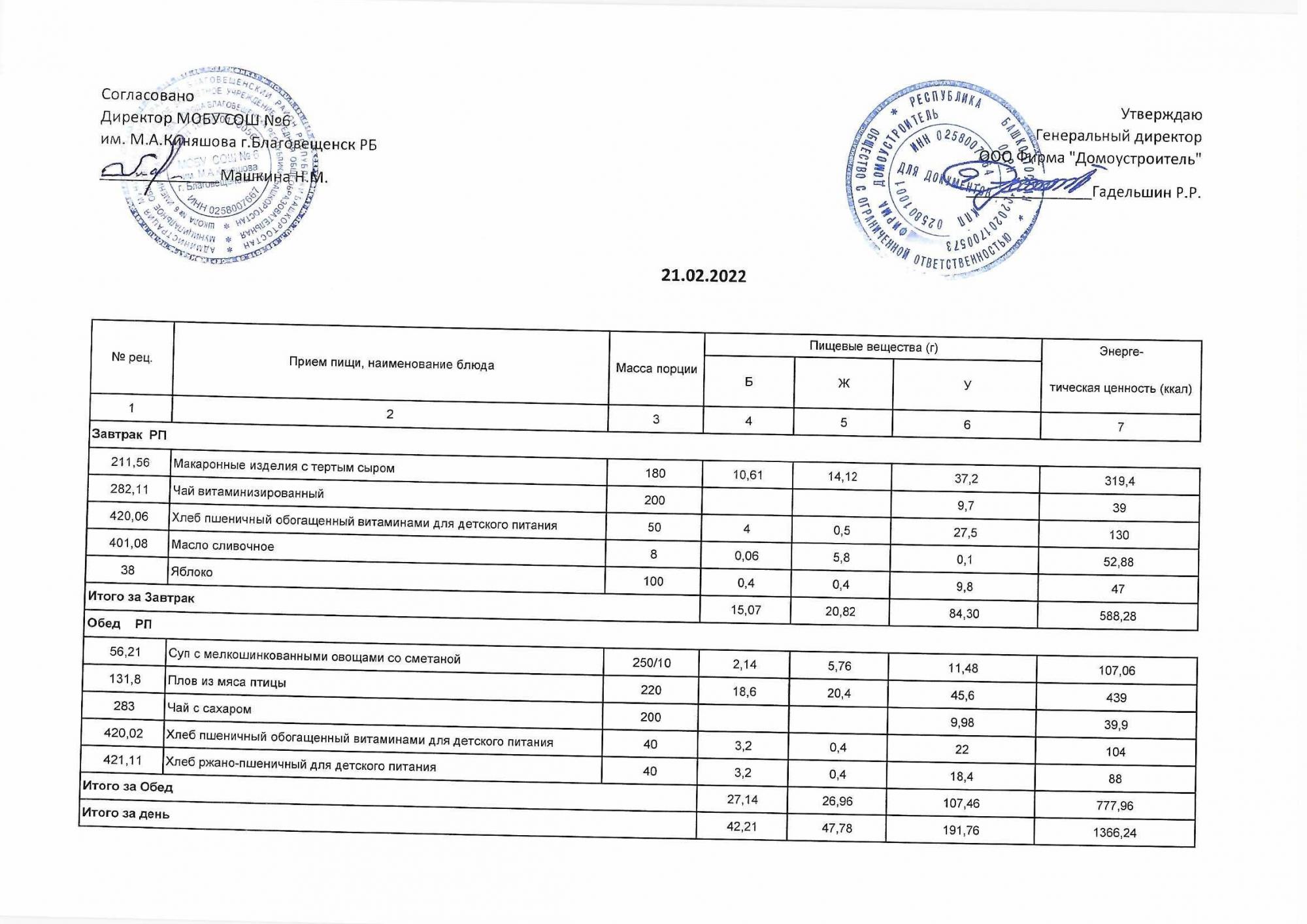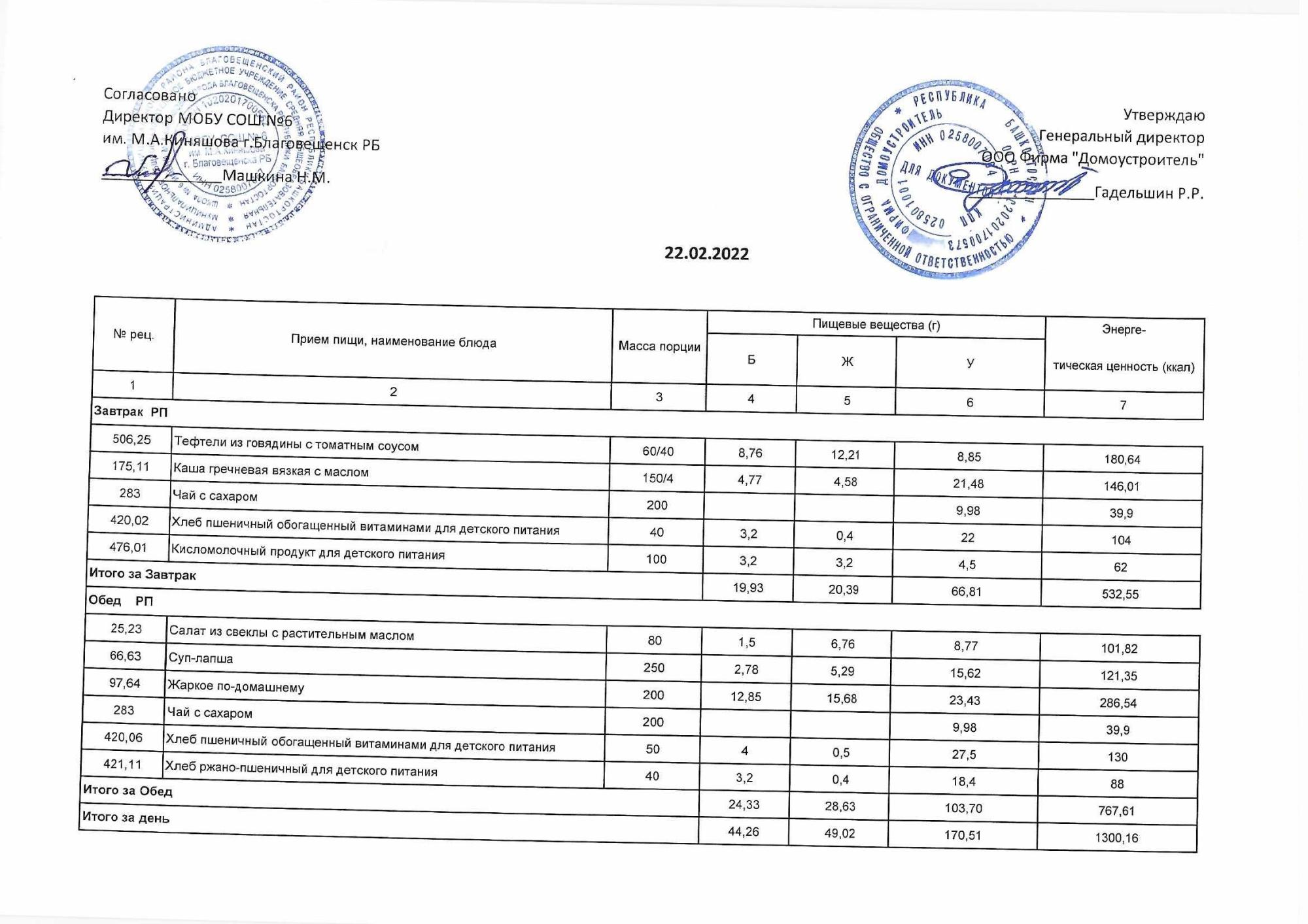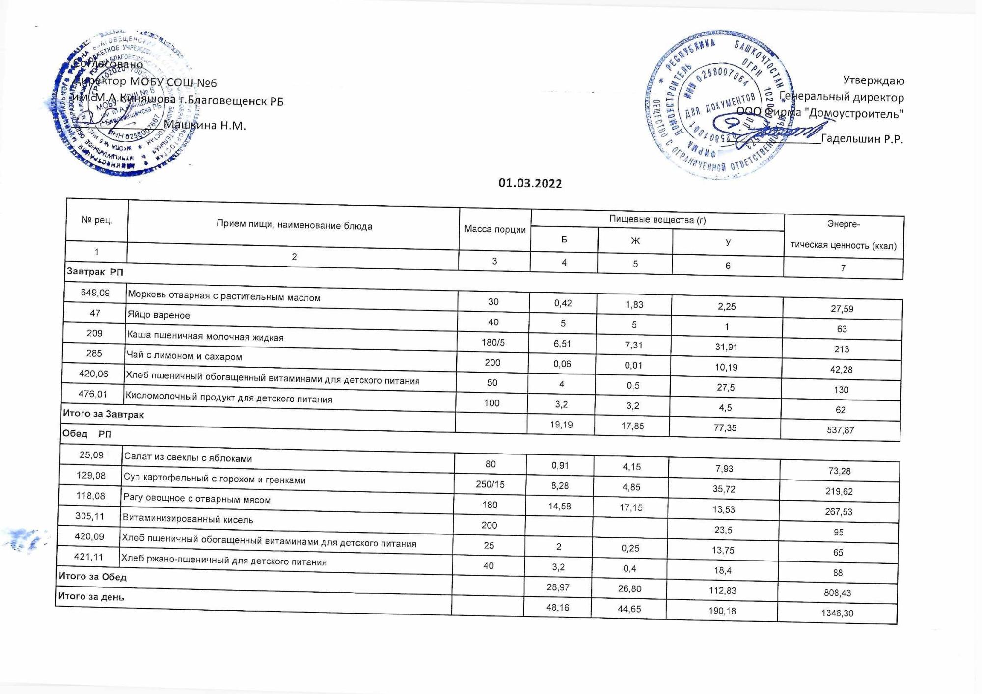 (Акт о замене блюд)