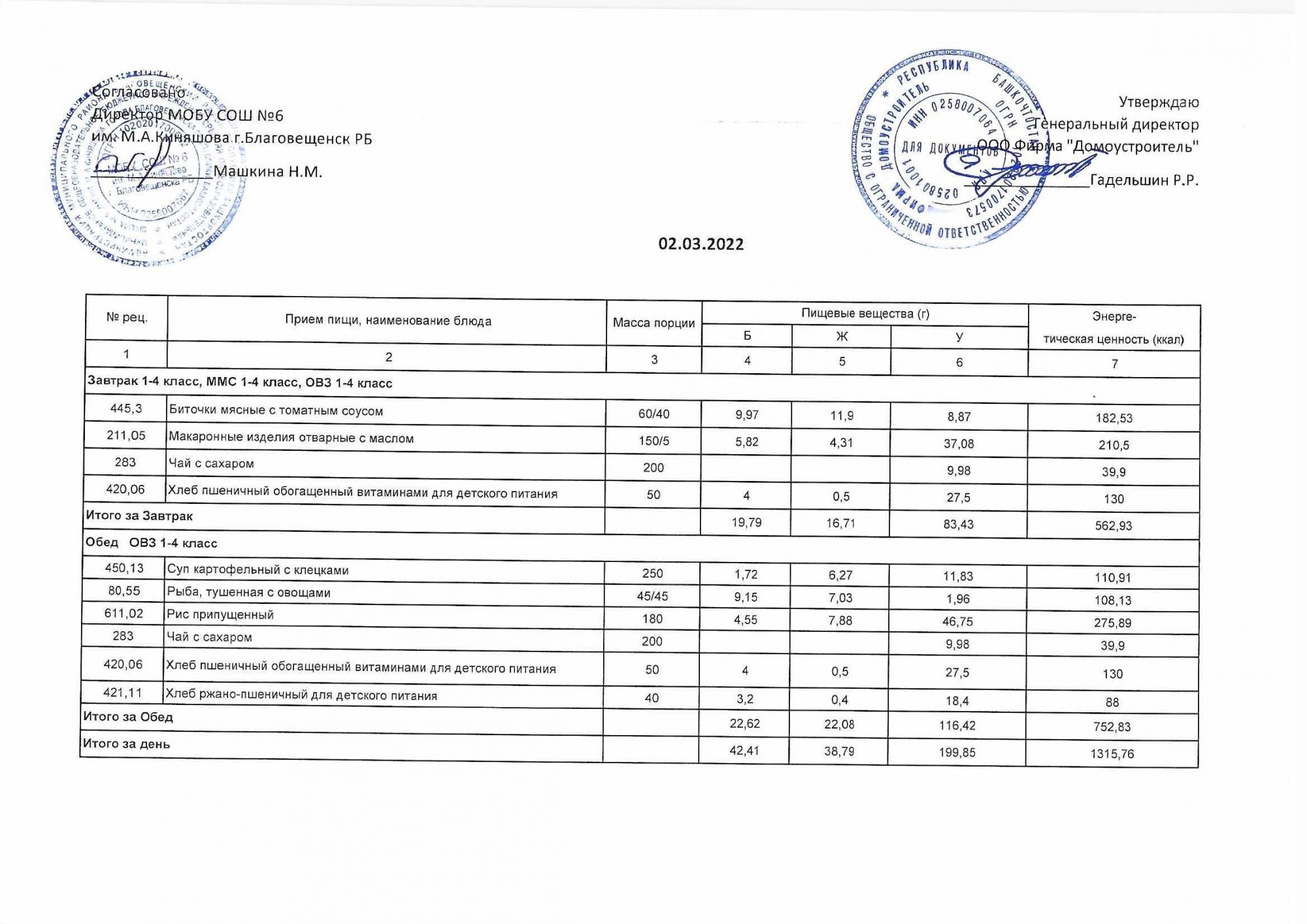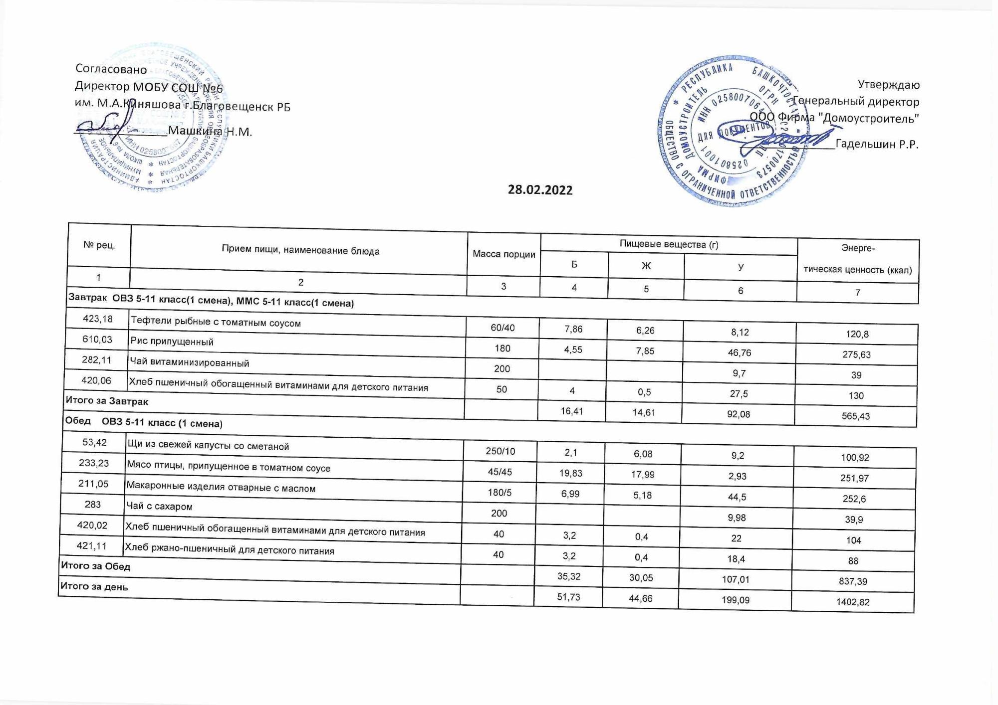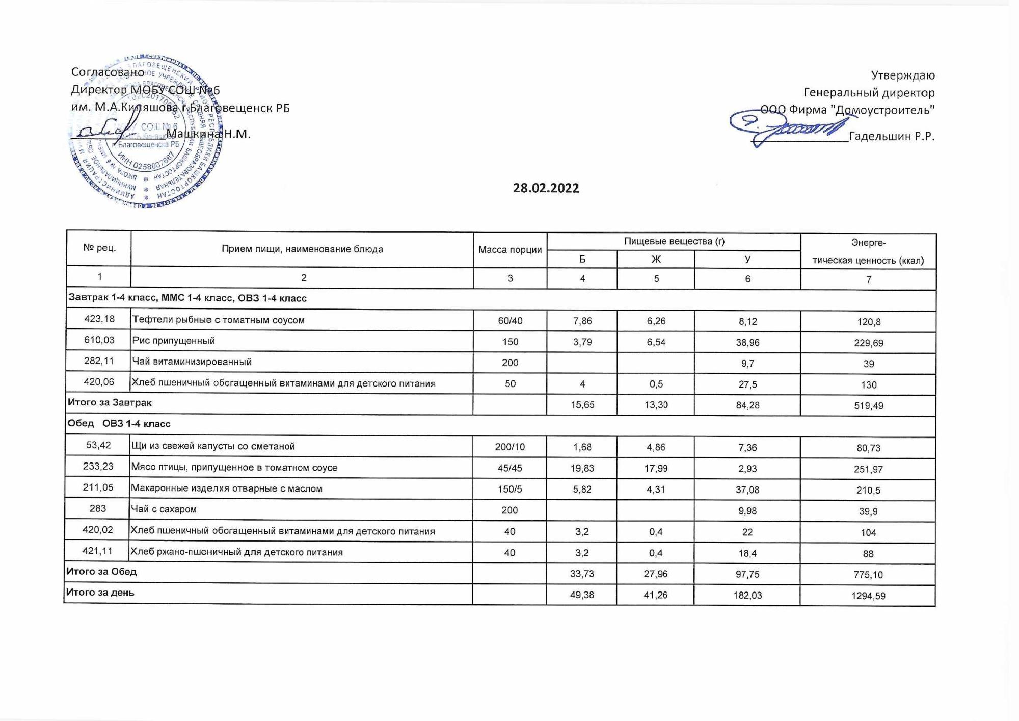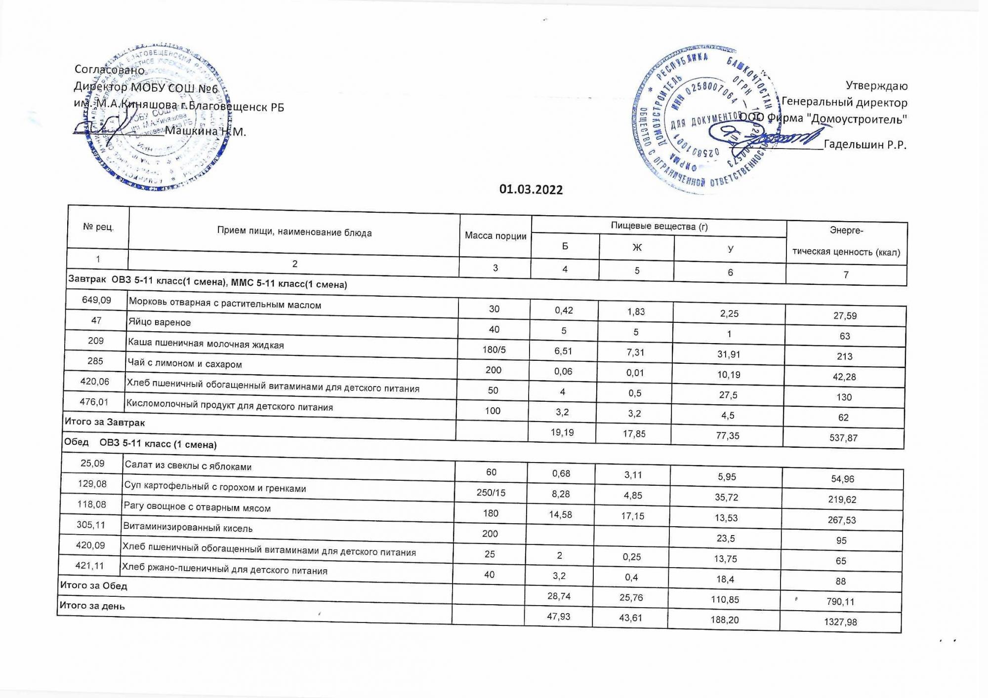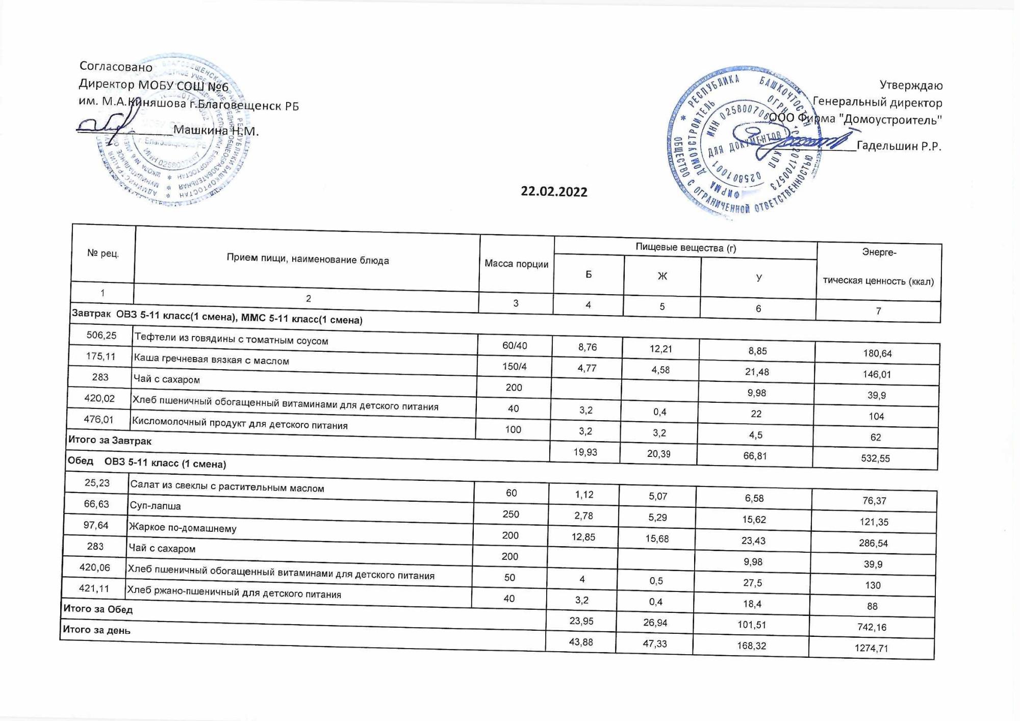 (Акт о замене блюд)