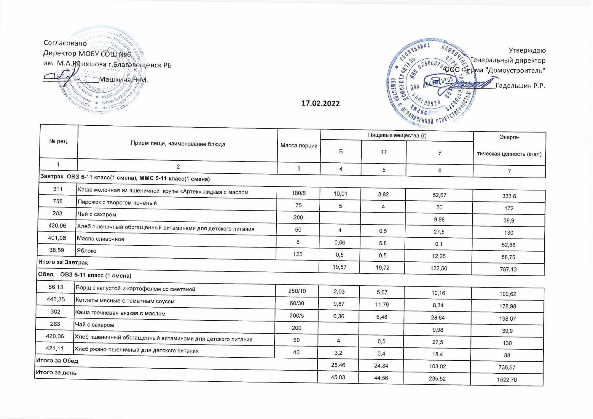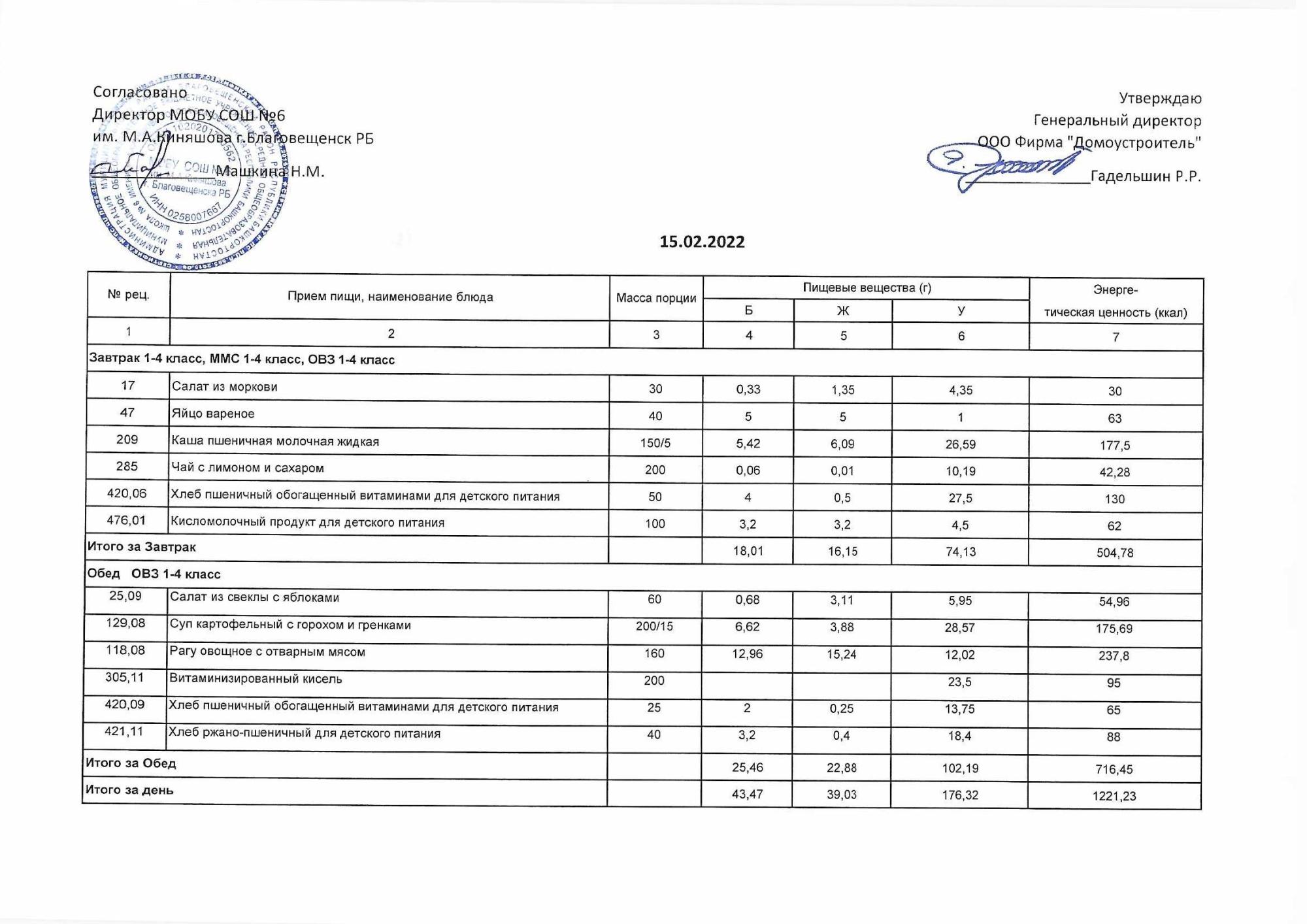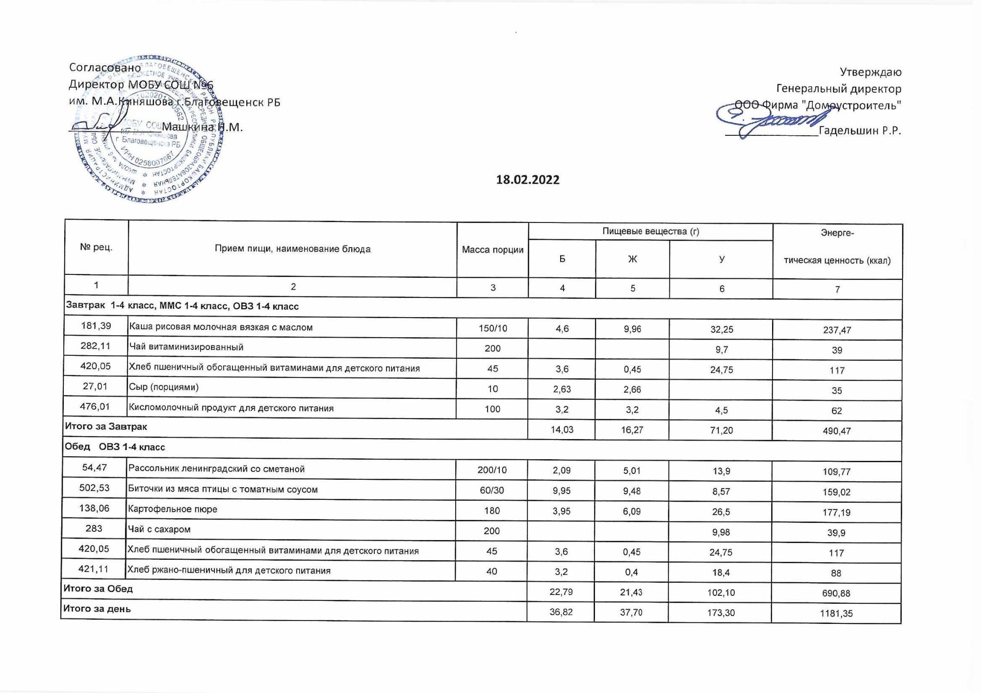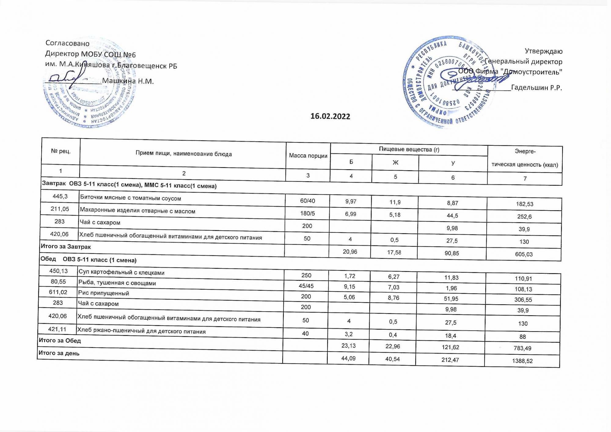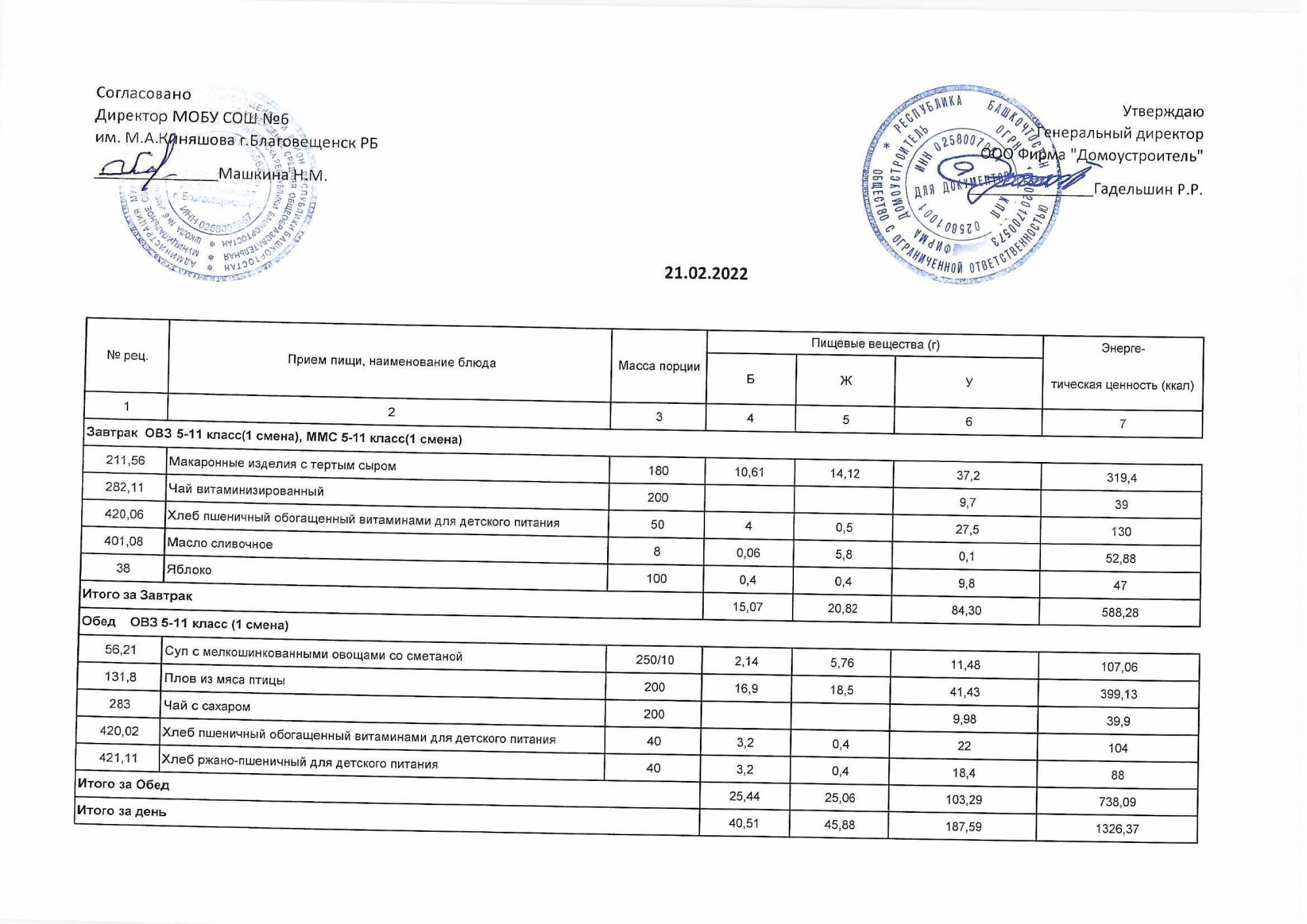 (Акт о замене блюд)